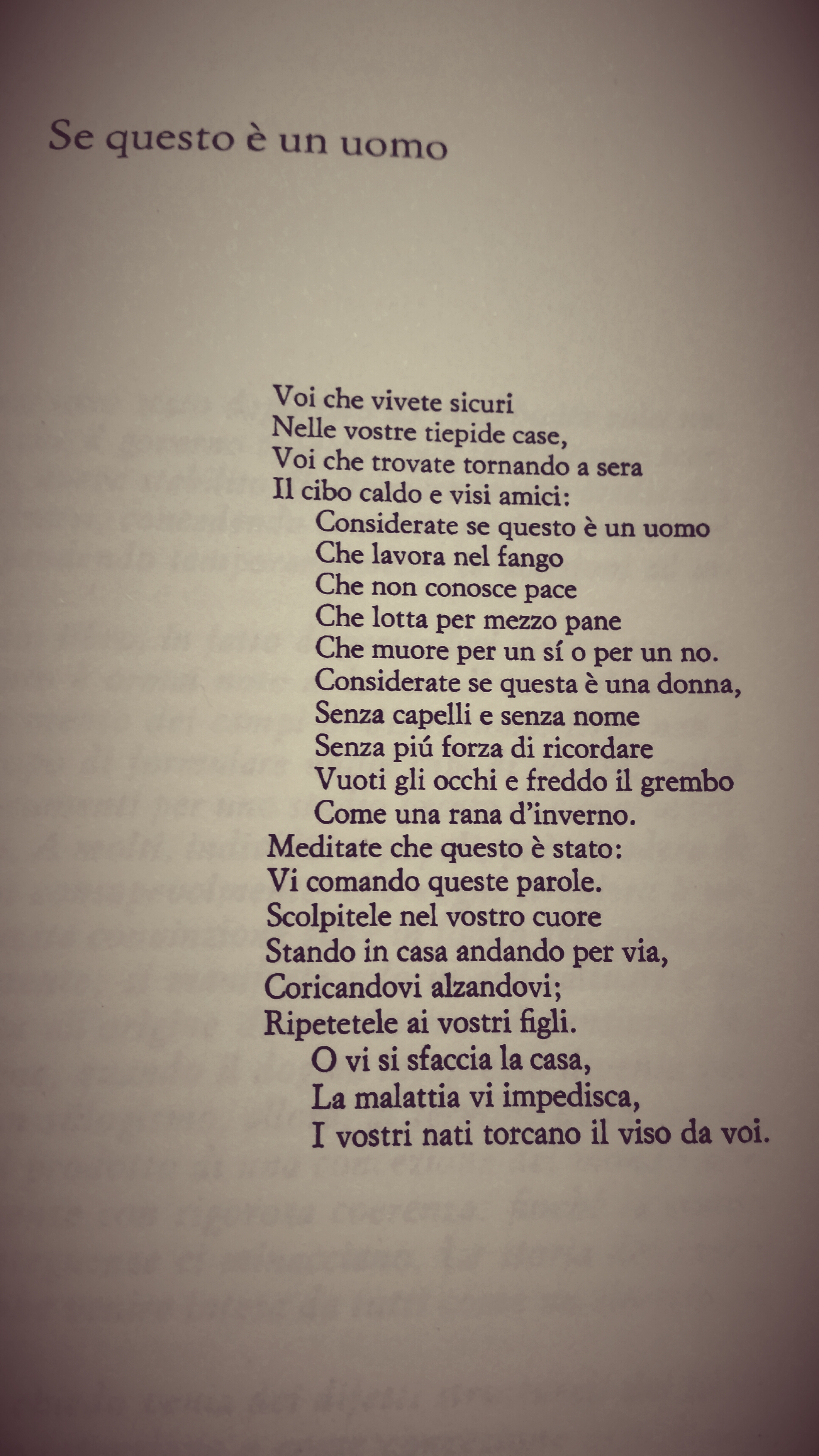 Questa voce è stata pubblicata in Pensieri in libertà e contrassegnata con Auschwitz, giornata della memoria, lager, memoria, poesia, primo levi, se questo è un uomo, shoa, sterminio, storia, vita. Contrassegna il permalink.